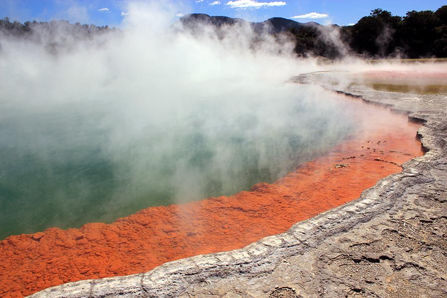 Sitting within the Pacific Rim of Fire, Rotorua is a geothermal wonderland with bubbling mud pools, clouds of steam, and natural hot springs perfect for bathing and relaxing in. After marveling at the distinctive landscapes and volcanic activity within a geothermal park, enjoy a simple soak in a natural hot stream or indulge in a wellness getaway at a luxurious spa.