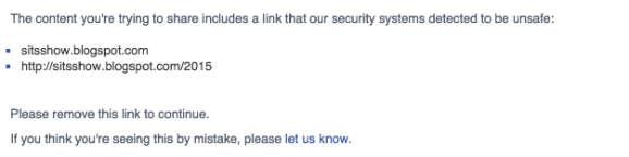 Update: April 30th 2015 – 11:30pm. Facebook released it’s block allowing our posts to be shared once again. Aparently there was a new security system going live today, and other people have had similar problems sharing ‘unsafe’ content. We never received any communication from facebook as to the reason why the post, and our entire site was blocked.