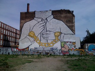 | Visual of average Joe, happily putting on clothes with their golden shackles. Represents Gold’s true purpose in our society, maintaining slavery systems. |