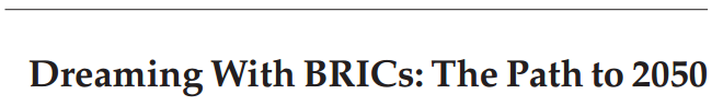 The same Goldman Sachs that, in 2003, coined the term BRICS and “forecast” the rise of Brazil, Russia, India, China, and South Africa in a paper entitled, “Dreaming With BRICs: The Path to 2050.” Bear in mind, this is a full four years before the BRICs even existed.