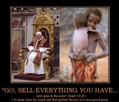 “Jesus was the poorest of the poor. Roman Catholicism, which claims to be His church, is the richest of the rich, the wealthiest institution on earth. (…) How come, that such an institution, ruling in the name of this same itinerant preacher, whose want was such that he had not even a pillow upon which to rest his head, is now so top-heavy with riches that she can rival – indeed, that she can put to shame – the combined might of the most redoubtable financial trusts, of the most potent industrial super-giants, and of the most prosperous global corporation of the world?”