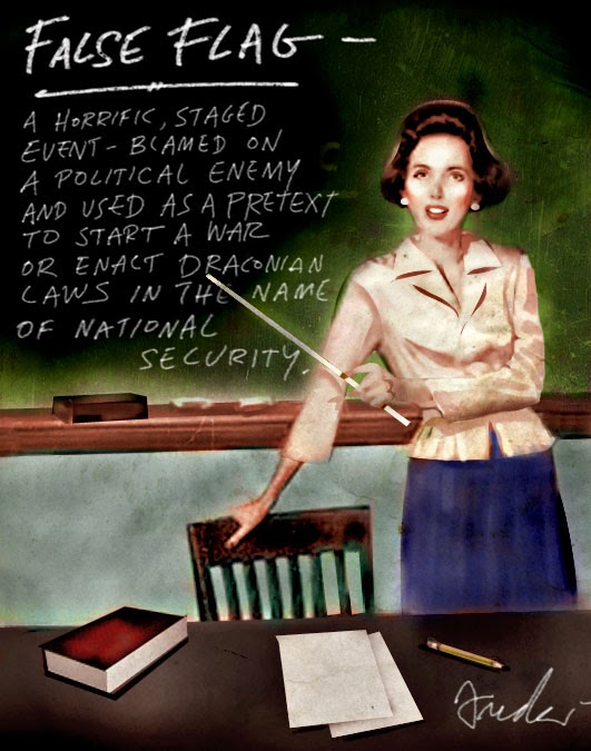 “False flag terrorism” is defined as a government attacking its own people, then blaming others in order to justify going to war against the people it blames. Or as Wikipedia defines it: