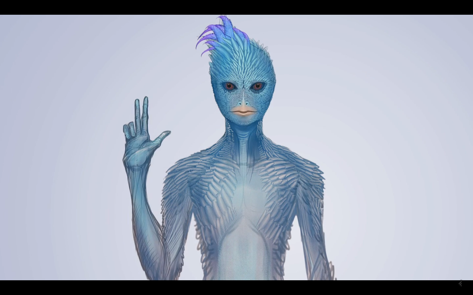 | Blue Avian illustration by Android Jones. Note: This image was created based on descriptions provided by Corey Goode not photographs or a personal experience. |