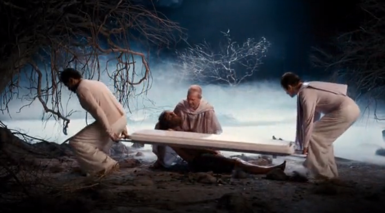 He searches and finds no grace there, until he is at the end of his rope and prays to the divine for help. Help comes and he is rescued by people surrounded with an aura of Light.