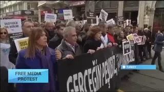 Turkish journalists are denouncing the arrest of two prominent editors. More than 100 people have demonstrated in favour of free …- NEW