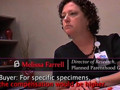 “We had two levels of invoicing for them. We had it recorded as ‘per consent,’” explains PPGC Director of Research Melissa Farrell. In the video, Farrell states “per consent” is the phrase used in PPGC budgeting in place of “per specimen” for fetal tissue.