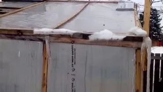 This is my greenhouse that I built for cheap, I used skids and free cycle wood. I will answer and questions anyone has.