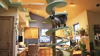 http://www.houzztv.com To keep his 15 rescue cats occupied, home builder Peter Cohen has constructed elaborate catwalks, …
