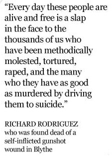 Alas, the halls of power here and abroad are filled with sociopathic pedophiles and no matter how much exposure the subject gets they almost always stay in power, nothing much ever happens to any of them. The same with the clergy. It’s as if they’re under some kind of protection. See what we get for sweeping it under the rug for a generation or two…it becomes close enough to normal that people just don’t seem to care; and if that isn’t just a little spooky to you, I submit that you need a checkup from the neck up