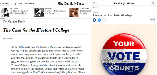 In a piece titled “Time to End the Electoral College,” The NYT Editorial Board wrote: