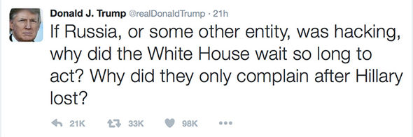 To the “Russian hackingcase” President-elect Trump was referencing in his Tweet, this report explains, revolves around the emails of former Hillary Clinton campaign chairman John Podesta that were released by Wikileaks—and that Wikileaks founder Julian Assange has repeatedly stated were not given to this international whistle blowing organization by Russia or any other state actor.