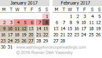 2017 begins in the middle of a Mercury Retrograde cycle that started with Mercury entering the Pre-Shadow in December 1, 2016, followed with a full intensity Mercury Retrograde station at 5:55am EST on Dec 19.Mercury goes direct in Sagittarius on Sunday January 8, 2017 at 4:43am EST. Mercury finally leaves the earth’s Post Shadow on January 27 at approximately 1:00 pm EST.