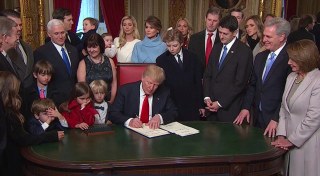 President Trump signs first orders in Oval Office | Daily Mail Online