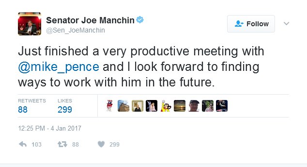 Skip to main content. Home … Manchin’s meeting with Pence comes after … “West Virginians have emphatically rejected the failed policies of the Obama era, yet …