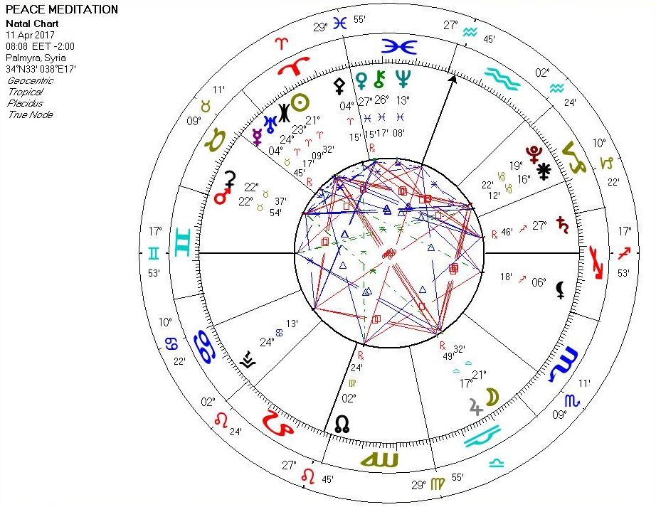 Astrological chart for our meditation shows a cardinal grand square of Sun/Uranus/Eris, Vesta, Jupiter/Moon and Pluto/Juno which signifies the peak point of planetary tension before its gets finally resolved as a result of the intervention of the Light forces: