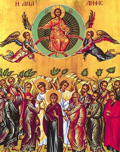 The story of the Ascension of our Lord, celebrated as one of the Twelve Great Feasts of the Church, is found in the book of the Acts of the Apostles 1:3-11. It is also mentioned in the Gospels of Mark (16:19) and Luke (24:50-53). The moment of the Ascension is told in one sentence: “He was lifted up before their eyes in a cloud which took Him from their sight” (Acts 1:9).