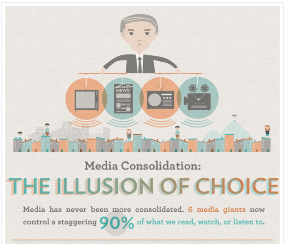 The illusion of choice: in the US there are now 6 mega corporations that control 90% of the media