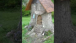 Vlogging a tree stump with a gnome church house in the trunk that I spotted at a thrift store called ‘Sassy Seconds Consignment … -