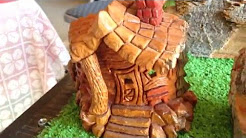 We are adding detail by carving cottonwood bark shingles with a dremel tool. The whimsical house is one of many created.