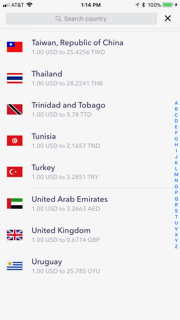 Now, the reason I am share this image with you is because when you launch the app it shows you, after you click the CASH button, and then tap the currency you wish to select, it shows you this list of the most popular currencies they exchange. It shows them in the form of the most popular exchanged to the least popular exchanged.
