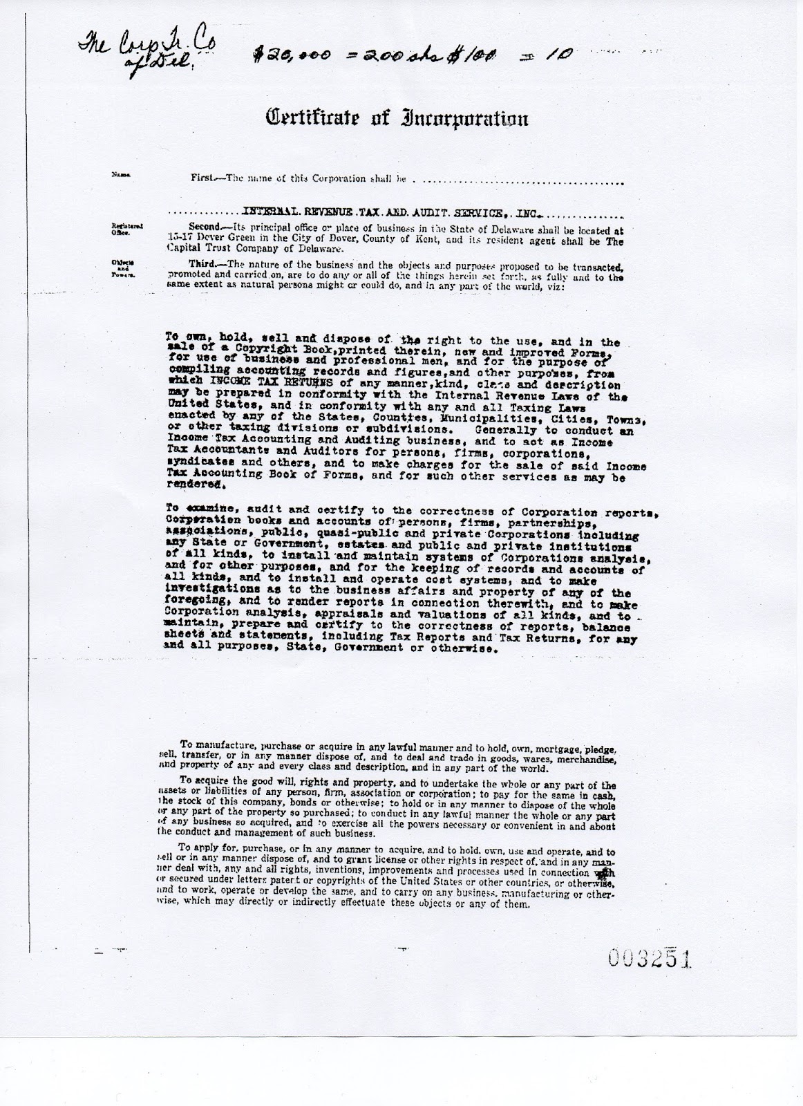 For those that want to know this is the incorporation papers of the IRS