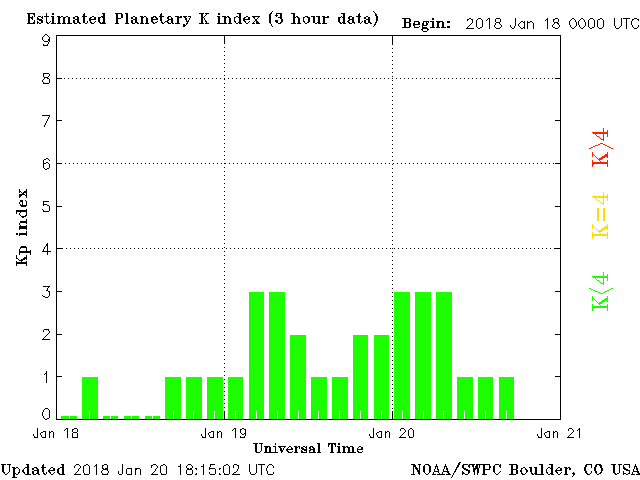 Geomagnetic conditions are currently stable, resting at 1 of the KP index. The coronal-hole stream impact did not cause any major geomagnetic storms last night, although secondary reverberations could occur throughout the day.