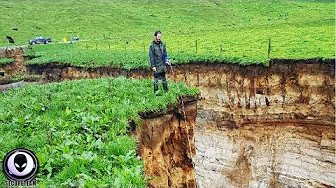 Russian villagers terrified as 105-foot-wide sinkhole – deep enough to fit a 16-storey building inside – suddenly opens up in a field …
