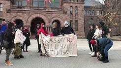 A small protest outside of the Ontario Legislature on Saturday November 10, 2018. Toronto Observer’s Bree-Ann Gittens was …