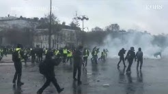 Clashes between police and yellow jackets in France امام برج ايفل والشنزليزيه صدامات بين الشرطة والسترات الصفراء بالغاز …