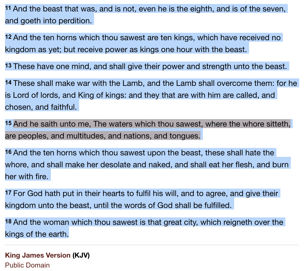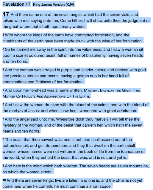 Qanon and Trump (KING WITH NO KINGDOM as of YET) and the other 9 Kings “Whom have no kingdom,” will now begin to devour “The Harlot, aka Babylon the Great, The Mother of Prostitutes, which is THE CRIME SYNDICATE, which enslaved all Earth, by toppling every nation, infiltrating and perverting every world religion, and whom brought their death and suffering upon the world from their seats of power, in the VATICAN, and in JERUSALEM (ISRAEL). And so it was written, and SO SHALL IT COME TO PASS, Donald Trump, Vladimire Putin, Xi Jingping, Kim Jung Un, and the other kings with no kingdom as of yet, NOW BEGIN, the REAL TAKE DOWN. (“The Ten Kings are of ONE MIND, they Hate “The Harlot.”)