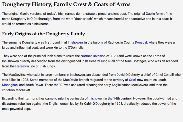 - When an Irishmen says the Gaelic form of Dougherty fast, it sounds exactly like “Dog-tree:”