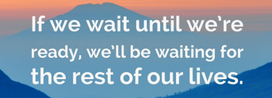 The time is now, otherwise as this quote says, if we wait until we’re truly ready, we’ll be waiting forever.