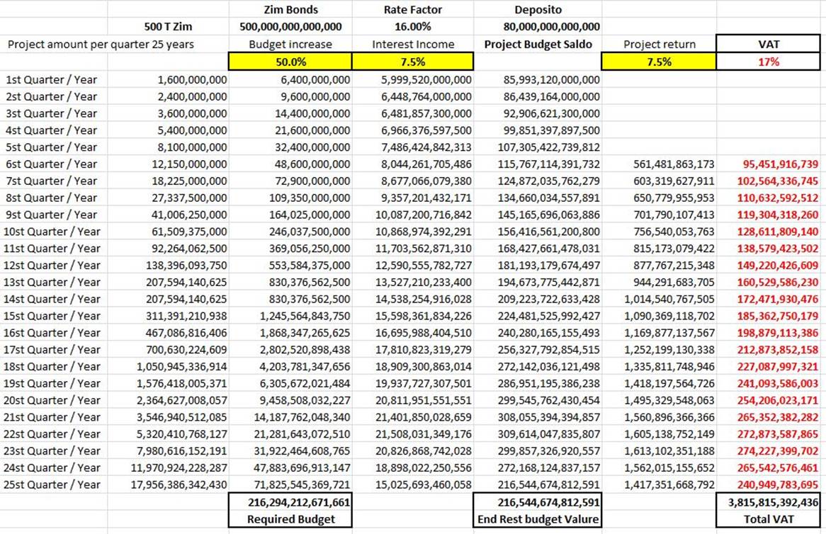 Where the required total value amounts to 216+ Trillion over 25 years, and at the end again has a starting amount to continue the projects of 216.5 Trillion.