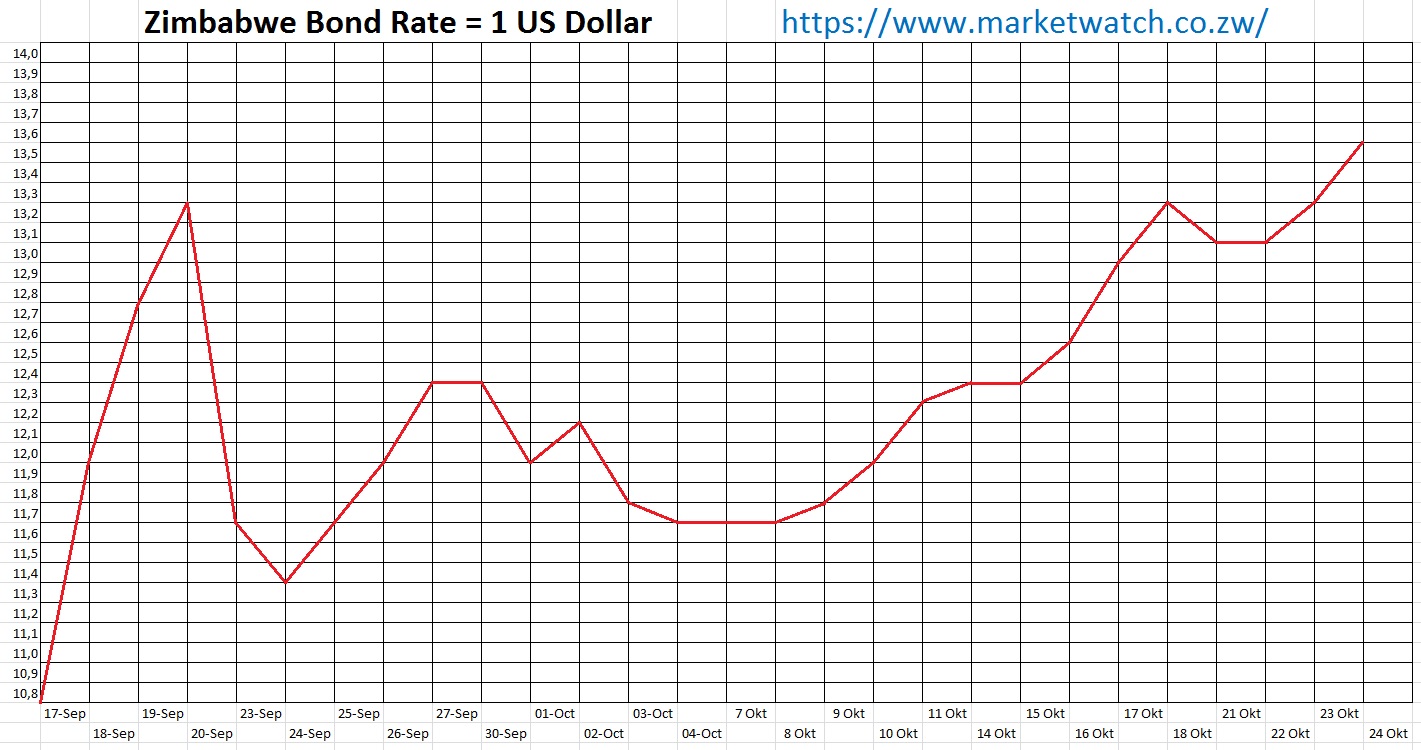 I have been able to make the value of the Zim Bond visible in a graph from September 17 to October 24 for the information I have found on the https://www.marketwatch.co.zw/ website, and looked back in time as far as this was possible.