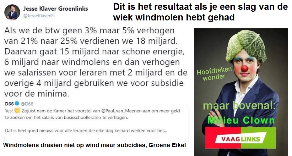 If we do not increase VAT by 3% but by 5% from 21% to 25%, we will earn 18 Billion, of which 15 Billion will go to clean energy.