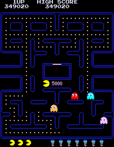 To score big in Pac-Man you have to become a key master. I have played to the twelve key or the twenty-fourth level, but my high score of 237,400 points was on the eleventh key or twenty-third level of that game. That was on a little $20 10 cm x 10 cm portable model that moves way too easily on any surface – worn out now. I await some time on a full-fledged sit down game with the good joy stick to blast passed the quarter million point mark.