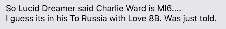 Do you think Charlie Freak, who is in constant touch with Q-Team, would state the following if it wasn’t true? “Charlie Ward is one of President Trump’s favorite video channels.”
