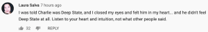 Right on, Laura Salva. I’m with you. Deep State? Charlie Ward? Seriously?