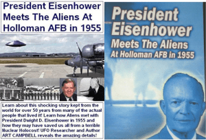 -Gene has photographs of President Eisenhower at Holloman Air Force Base, going into Hangar 18, during the time of the 1954 Greada Treaty between the USA and the Alien Greys.