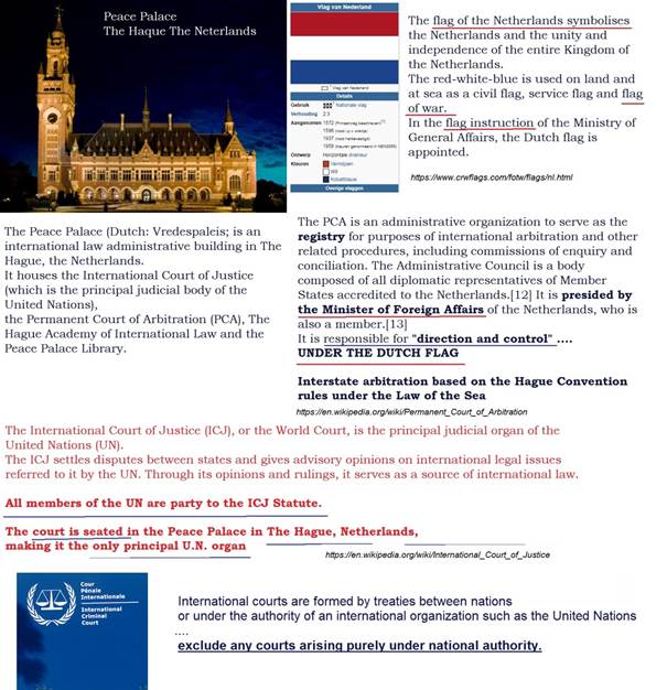 As a reward for the betrayal from the Netherlands, where no more laws apply from May 13, 1940, the former Netherlands was allowed to establish the International Court of Justice in The Hague, precisely to keep the power of other countries and disputes under the control of the UN.