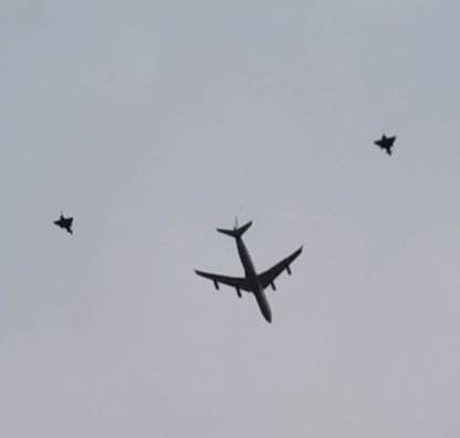 It is noteworthy that yesterday on October 5, 2020 an airplane with two jets as escort was spotted in Germany.