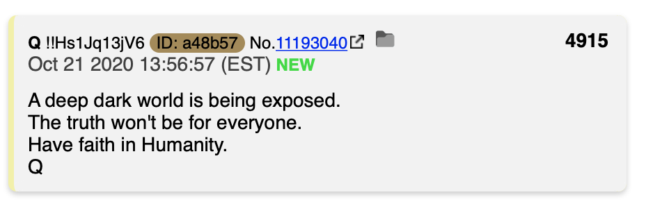 I do have faith in Humanity. Those of us who have researched the TRUTH, and who have unplugged from the de_mon de_ep st*ate matrix are ready to hold God’s light in the coming confusion.
