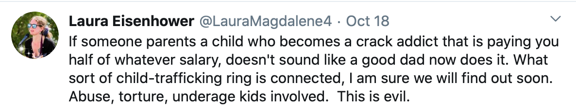 Laura Eisenhower posted something so compassionate about [H]unter [B]i*den on 10-18-20 that was a great reminder for us to hold on to our Humanity, kindness and understanding, especially in these increasingly chaotic times.