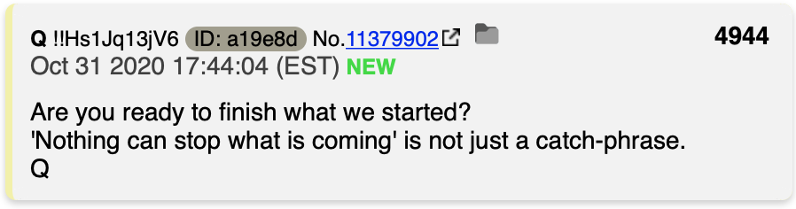 Source: Dinar Chronicles | By Kat Q is back. Hooray. 7 days without Q-drops was too long. Q Yesterday, a dear friend told me with absolute … X22 Report — Episode 2113: The Economic Strategy, Watch the News for Next EventDestroying the Illusion — [3.3] Klobuchar Quits, they all Endorse Biden, “Who Is Q?” Trends on Twitter, Other Fake NewsX22 Report — Episode 2109: Witnessing the Transition, No Report, Just Indictments