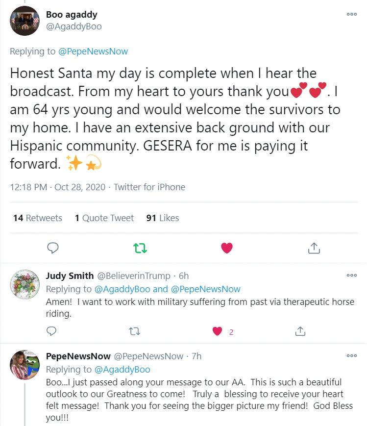 This Twitter reply came in and it truly touched Team Trump! AdaddyBoo…do you realize how you lifted the hearts of the people involved with the GREATNESS plan! Your message and messages like this are truly uplifting. Thank you Patriot!!!