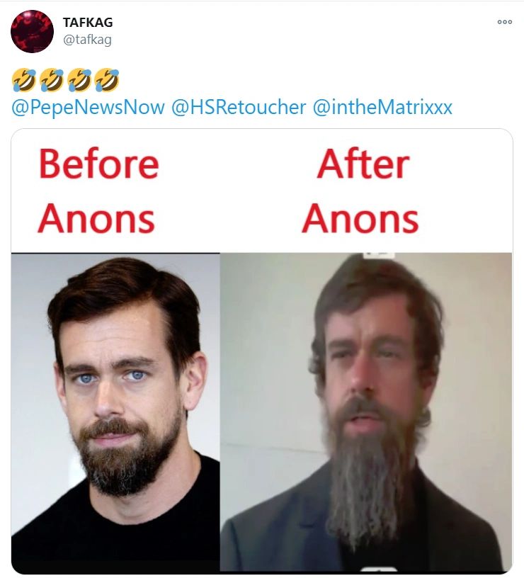 Quite honestly, this does not even look like Dorsey. The eye color and shape changed. The ears look different. Remember, he has codes to his name. They all do! Zuck looked like a Robot that did not blink and the FB staff said Zuck had a hard time with his connection because he was all alone. Sundar’s nose was definitely added on in this fotoforensic.