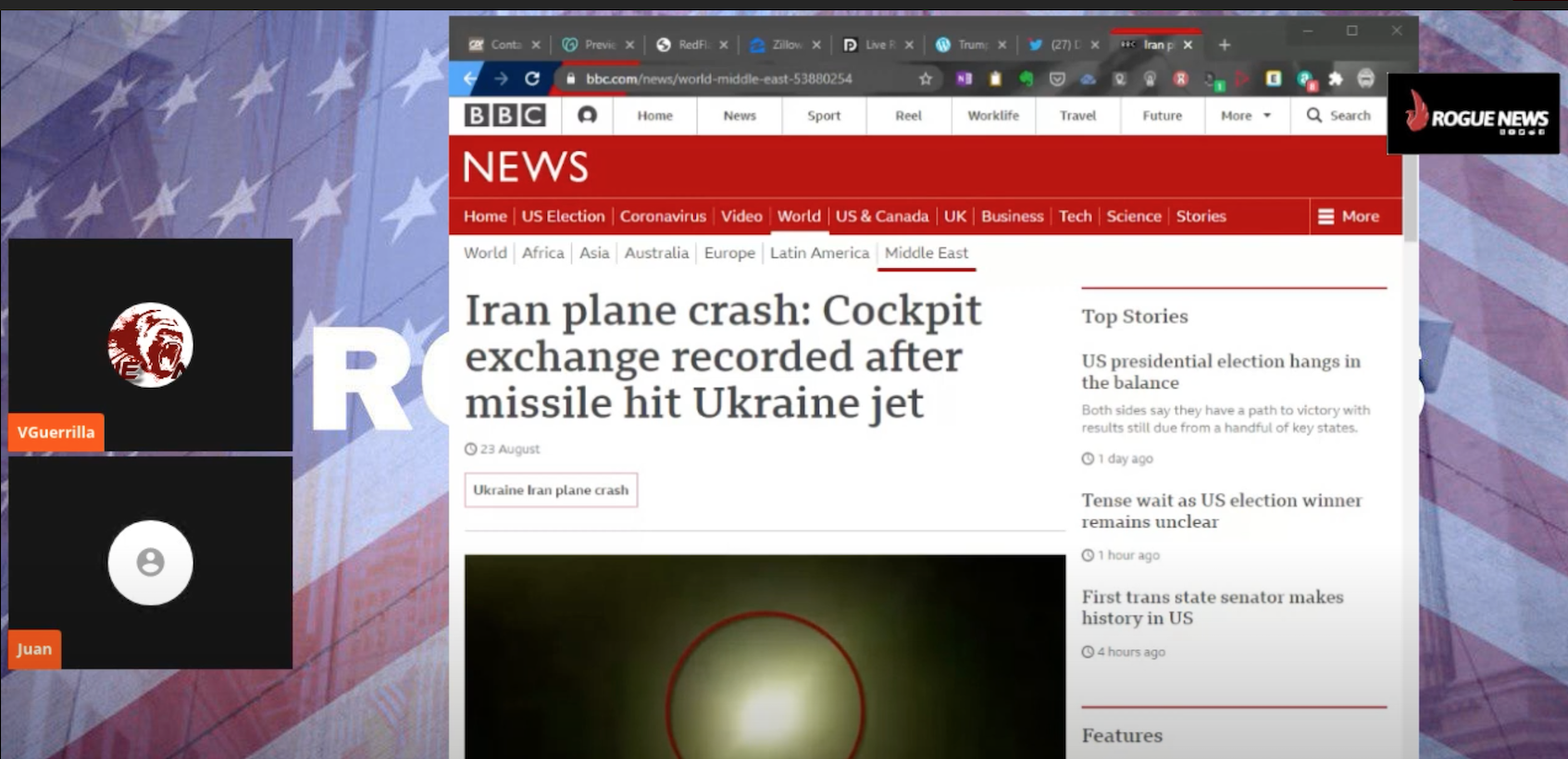 1:00:15 VGuerilla: Oh look at that! Just happene3d ABC News just retracted it’s Arizona projection for Joe [B]i*den… (laughter)… OMG… that’s huge… Emergency Injunction being filed in Michigan… and the fraud begins to unravel…