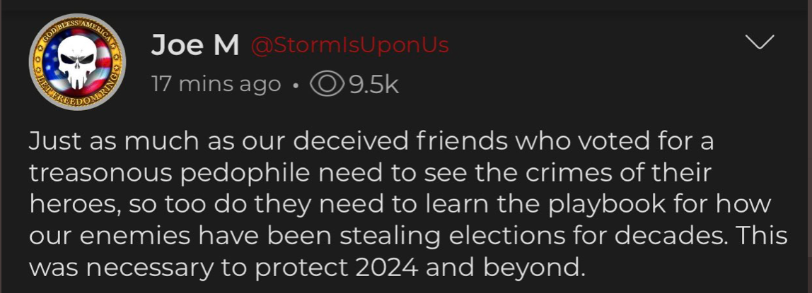 I’m sure Juan O’Savin knew all that but of course he couldn’t say it. When he recorded this video the election brawl was in full swing between the de*ep state stealers and the Patriot victors.