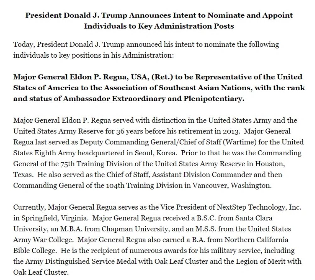 And then President Trump took action and will nominate and appoint individuals for Key Administration posts: