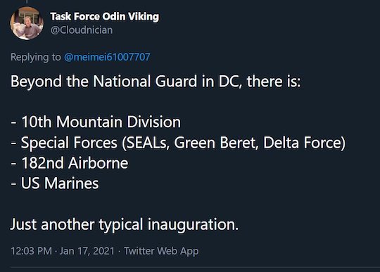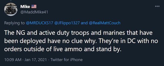 Many Tweets on 1-17-21 were about the Massive Military in D.C. And not only D.C.,